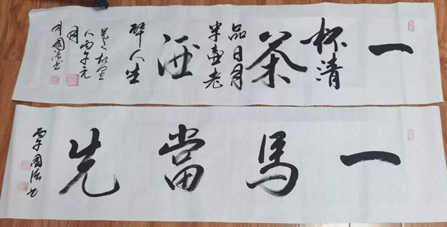 东风送暖花千树,骏马扬蹄路八方。活动现场,书法家司国法笔走龙蛇,泼墨成章,一幅幅“一马当先”、“马到成功”墨宝及充满喜庆和祝福的春联脱颖而出,画家刘丽、傅贞吉点夋勾勒、情寄丹青,创作了一批牡丹、葡萄、竹子等色彩明丽、臻善臻美的佳作,将分别赠送给退伍老兵革命功臣,传承沂蒙拥军爱国精神。